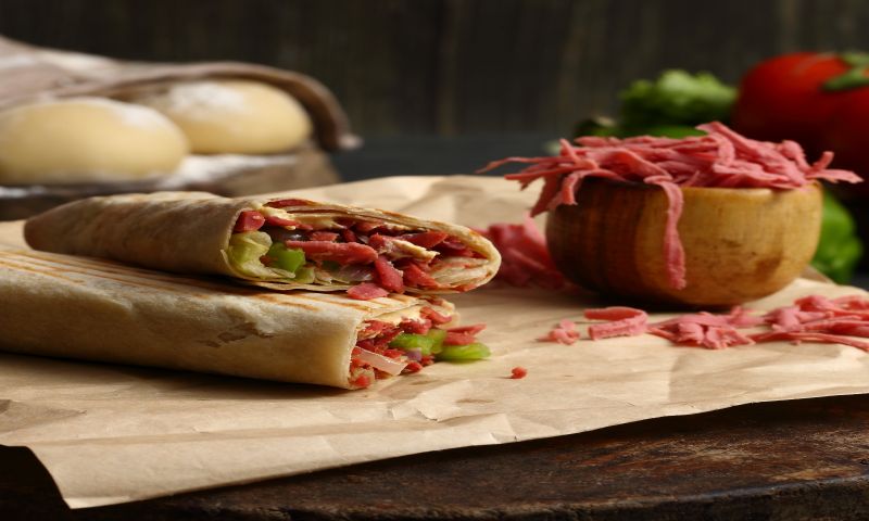 ساندويش شاورما اللحم بخبز الصاج